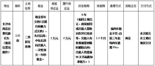 一、招租项目名称:长沙市雨花区黎锦苑西片区土地